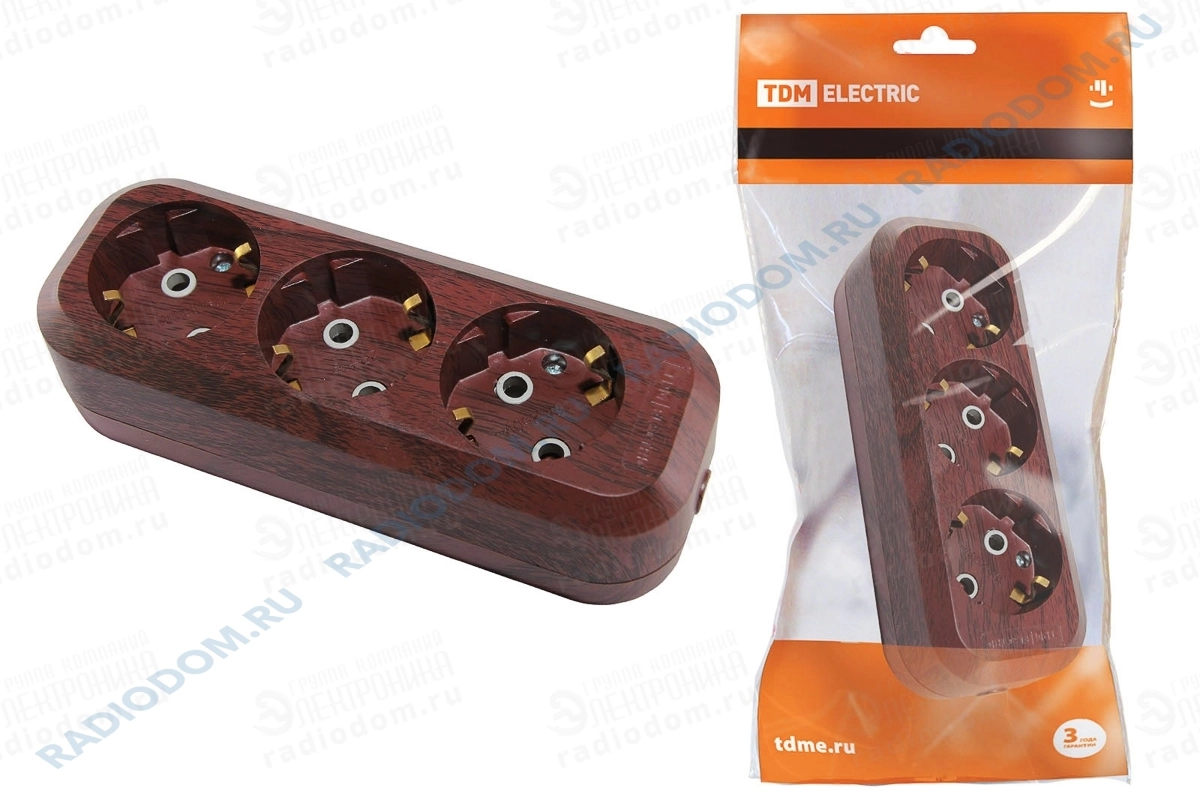 Колодка удлинителя 3 розетки с заземлением 16А бук ЭКО TDM ELECTRIC