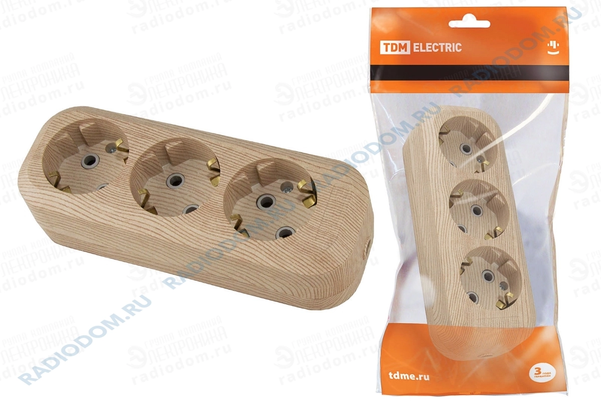 Колодка удлинителя 3 розетки с заземлением 16А сосна ЭКО TDM ELECTRIC
