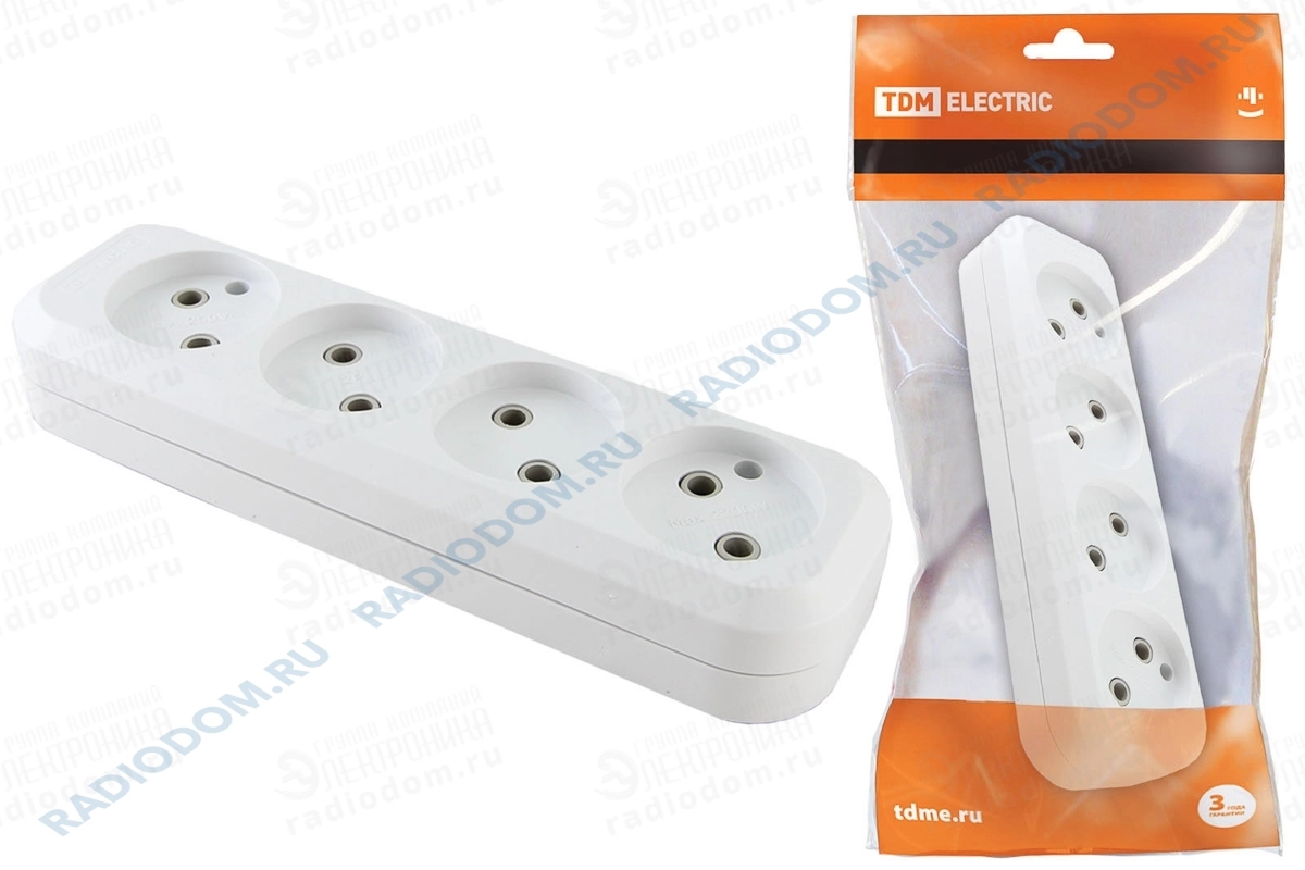 Колодка удлинителя 4 розетки 10А белая TDM ELECTRIC