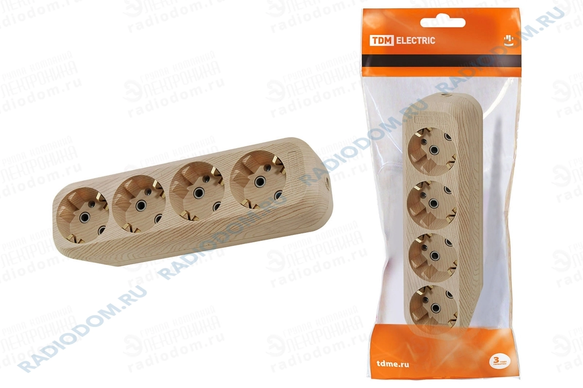 Колодка удлинителя 4 розетки с заземлением 16А сосна TDM ELECTRIC