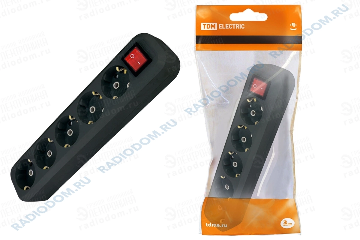 Колодка удлинителя 5 розеток с заземлением с выключателем 16А белая TDM ELECTRIC