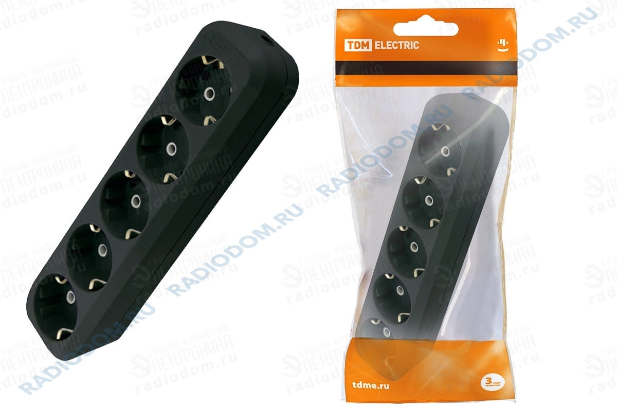 Колодка удлинителя 5 розеток с заземлением 16А черная TDM ELECTRIC
