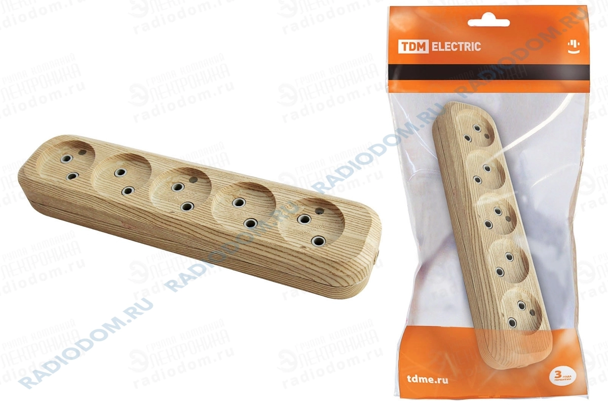 Колодка удлинителя 5 розеток 10А сосна ЭКО TDM ELECTRIC
