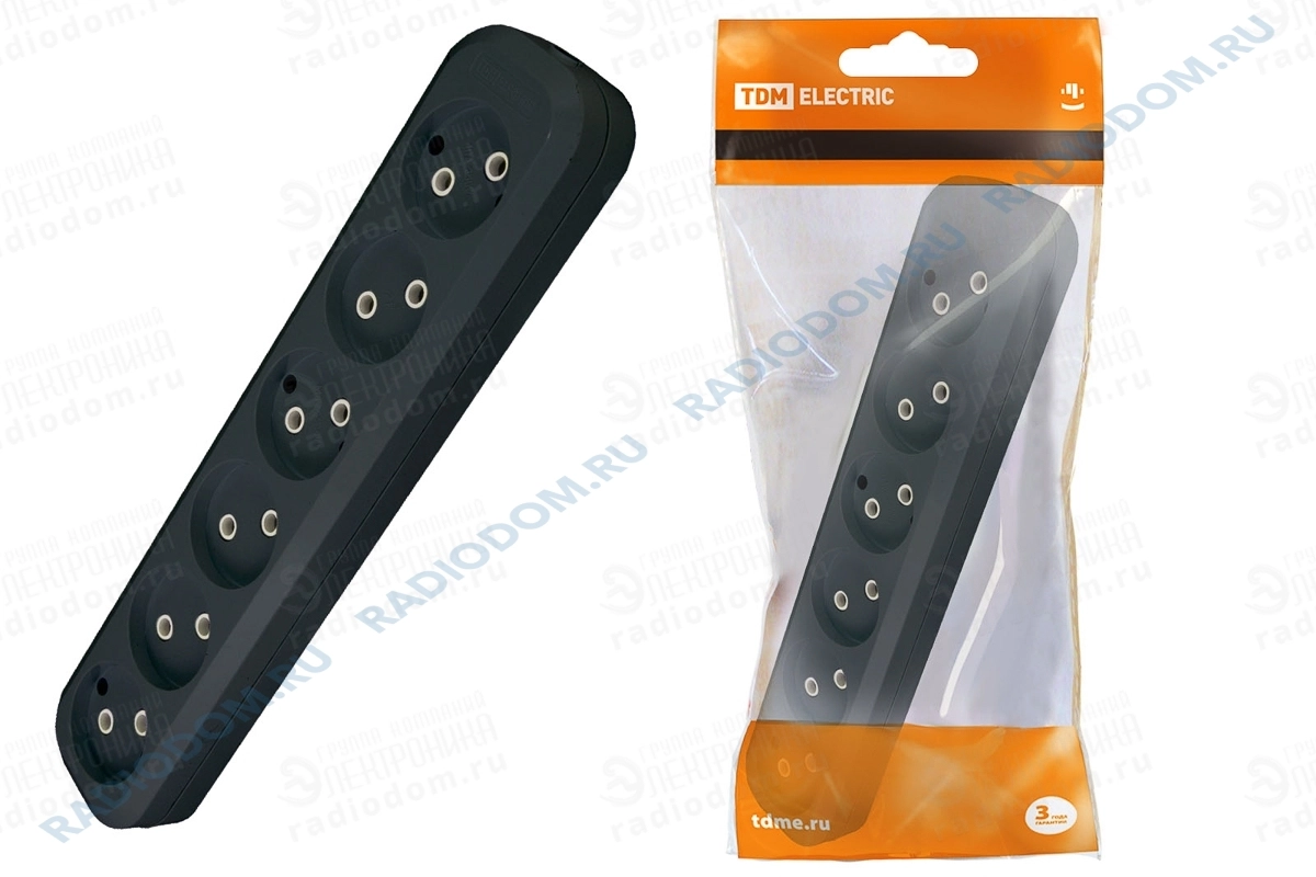 Колодка удлинителя 6 розеток 10А черная TDM ELECTRIC