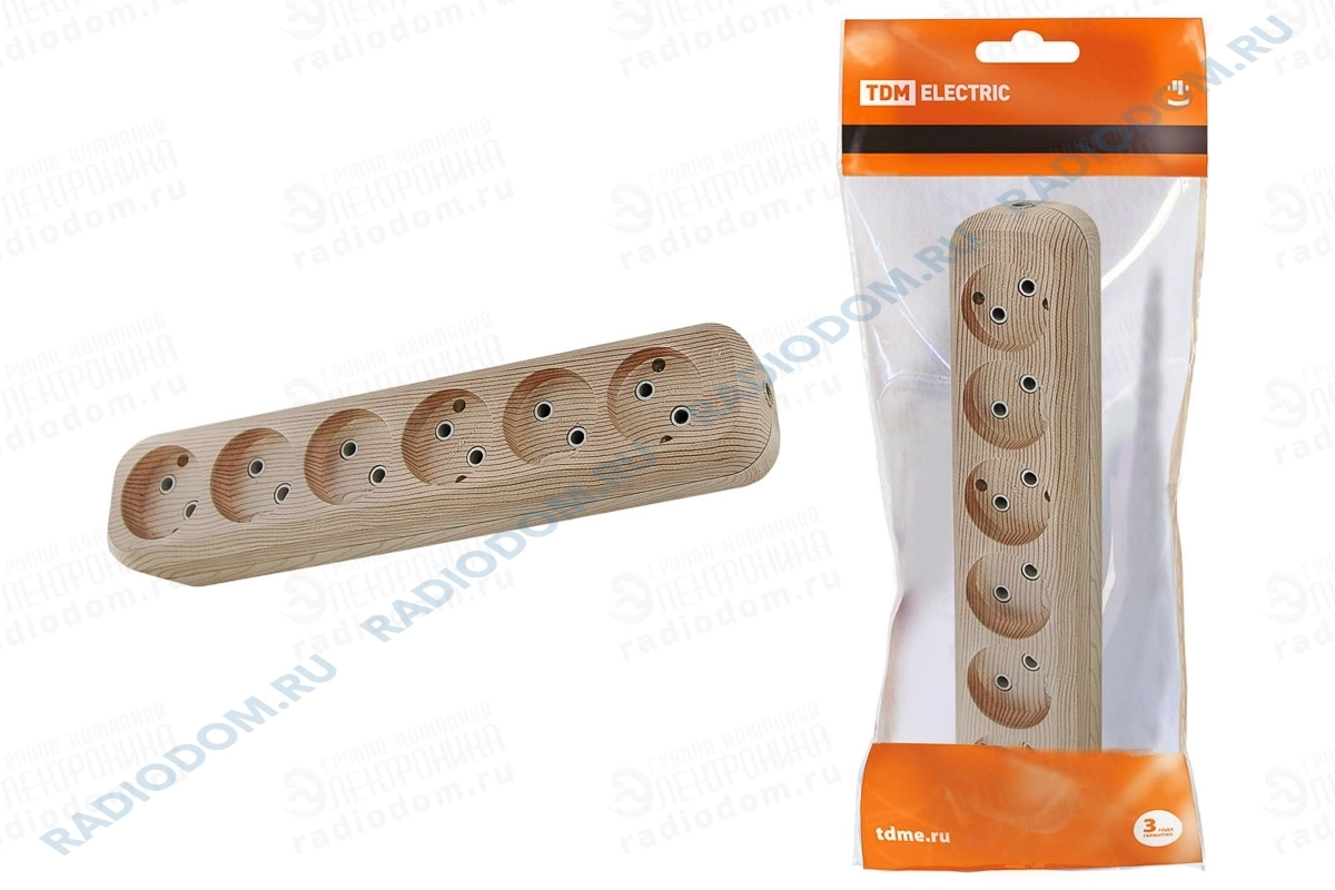 Колодка удлинителя 6 розеток 10А сосна ЭКО TDM ELECTRIC