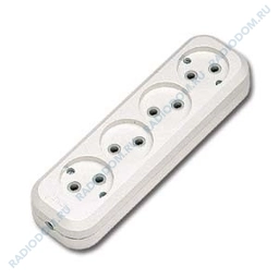 Прямоугольный корпус удлинителя имеет четыре гнезда розетки, размещенные под углом 45° относительно корпуса. Это позволяет задействовать максимальное количество гнезд даже при подключении угловых вилок и габаритных адаптеров. Колодка удлинителя позволяет подключать электроприборы с суммарной мощностью до 1300Вт.