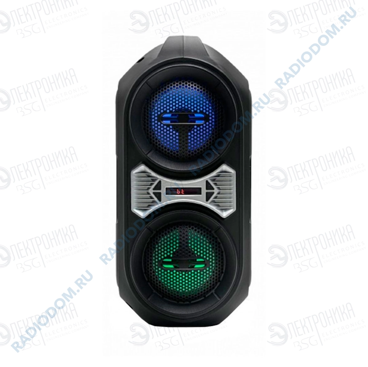 Стильная портативная колонка со встроенной ручкой. Полный набор функций: Bluetooth, AUX, FM, MP3-плеер. Возможность подключения микрофона для караоке Встреонная антенна LED-экран Подсветка Пульт ДУ Акустическая система 2.0 SmartBuy WASP 2, 10 Вт, Bluetooth, MP3, FM-радио.