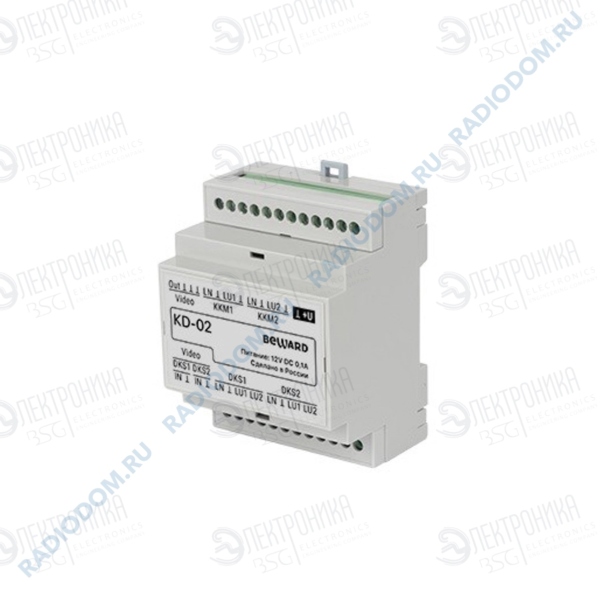 Коммутатор KD-02 позволяет подключить два домофона серии DKSxxxx для одновременной работы в одном подъезде (в одной координатно-матричной линии связи). Рекомендуется устанавливать коммутатор рядом с блоком питания в защищённом, недоступном для посторонних месте.