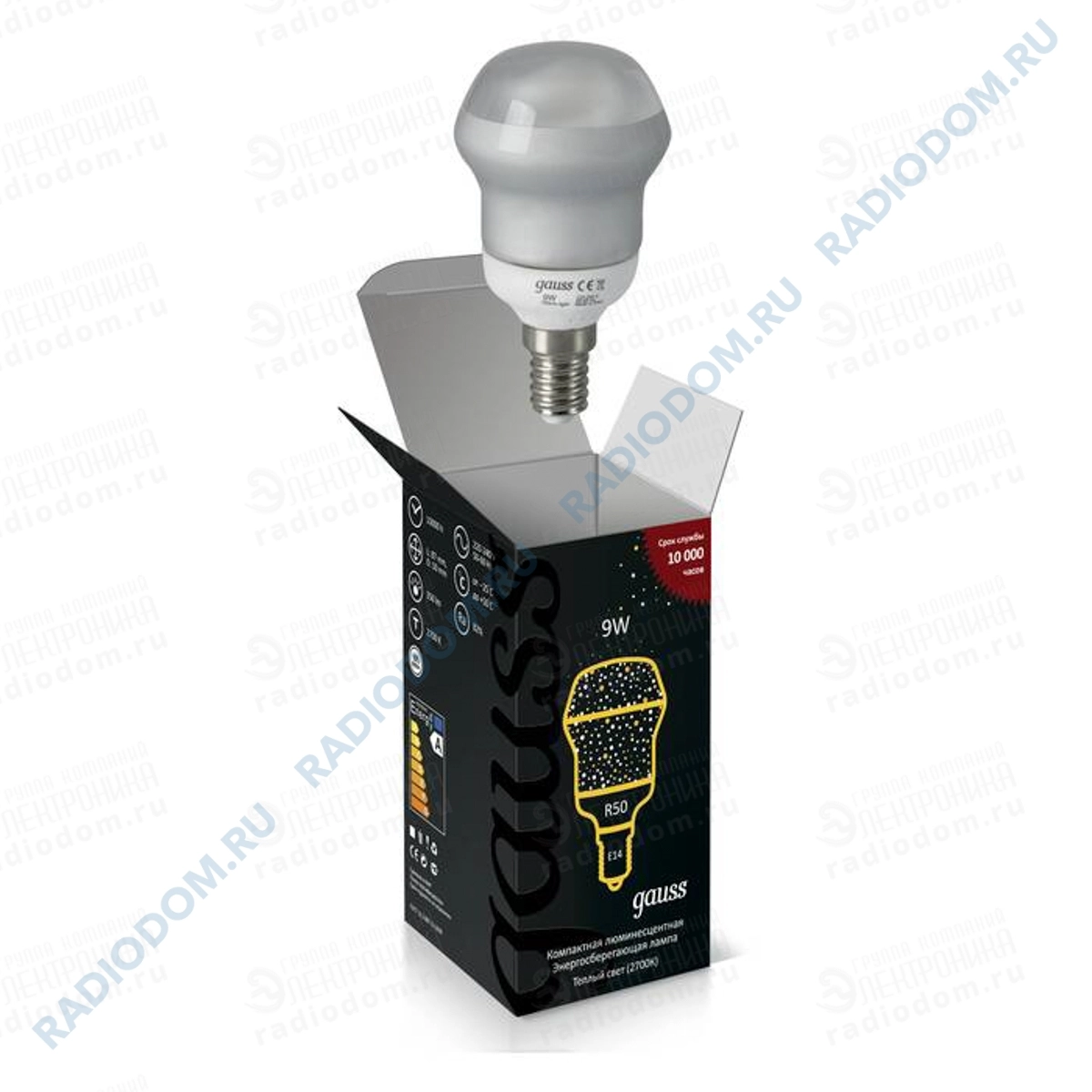 Лампа люминесцентная (КЛЛ) R50 9Вт 220В E14 2700K gauss