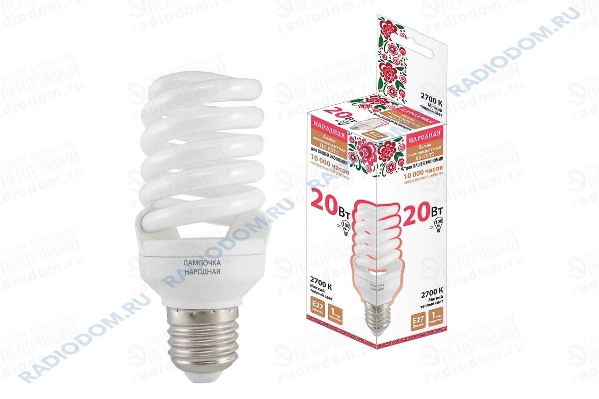Лампа люминесцентная (КЛЛ) 20Вт 220В E27 2700K TDM ELECTRIC