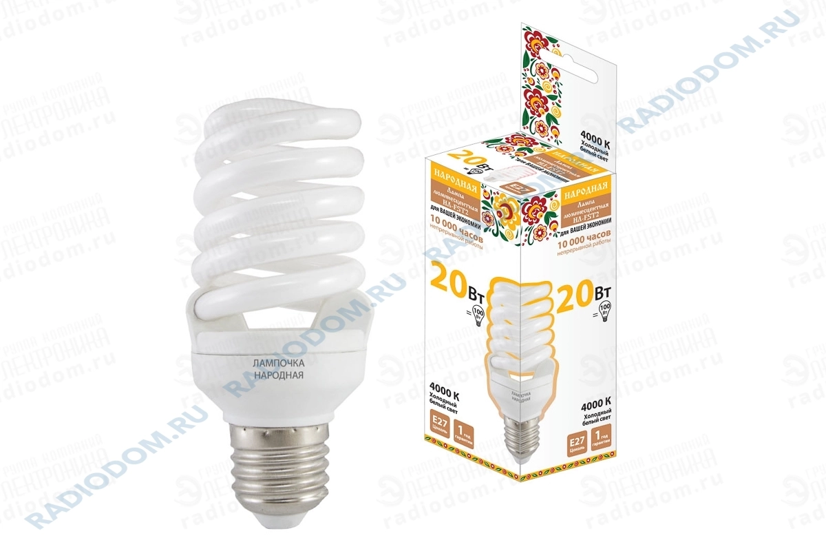 Лампа люминесцентная (КЛЛ) 20Вт 220В E27 4000K TDM ELECTRIC