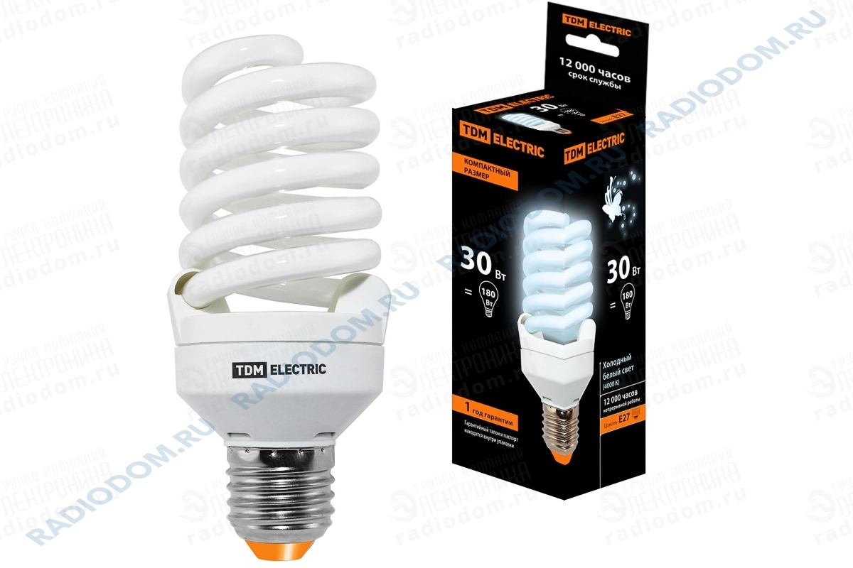 Лампа люминесцентная (КЛЛ) 30Вт 220В E27 4000K TDM ELECTRIC