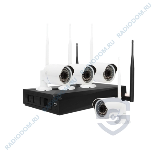 Комплект видеонаблюдения беспроводной без жесткого диска 4 наружные цилиндрические видеокамеры и ST-400-WF IP регистратор Spacetechnology