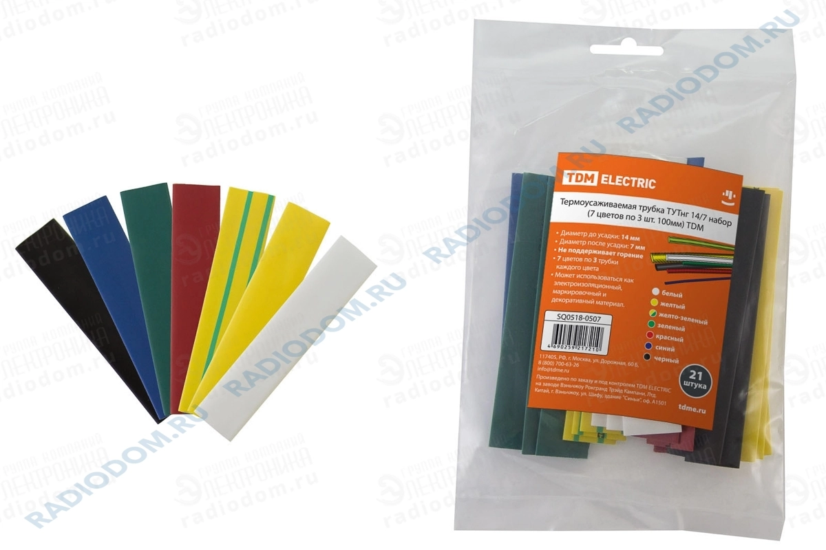 Трубка термоусадочная набор 14/7мм разноцветный TDM ELECTRIC