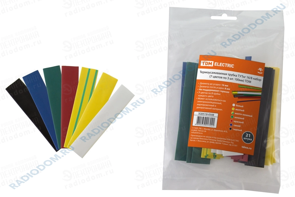 Трубка термоусадочная набор 16/8 разноцветный 21шт TDM ELECTRIC