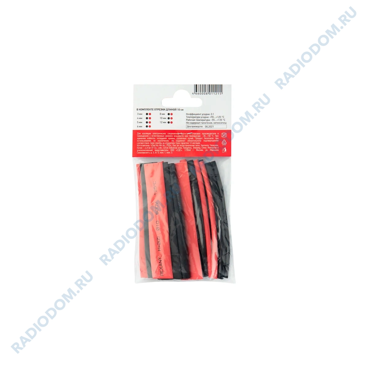 Трубка термоусадочная набор Максимум №6 черный/красный Rexant