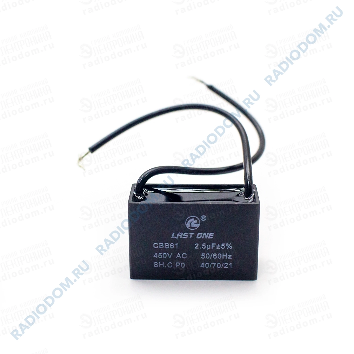Конденсатор пусковой 2,5мкФ 450В 37х25мм провода CBB61 Last One