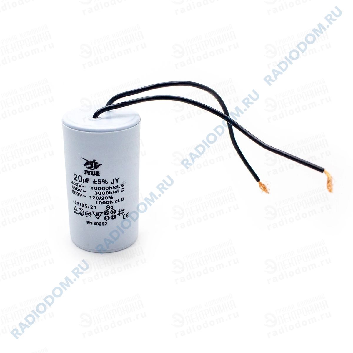 Конденсатор пусковой 20мкФ 450В Ø37х72мм провода CBB-60