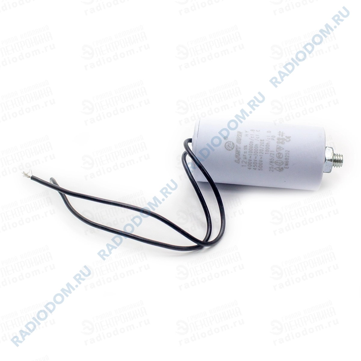 Конденсатор пусковой 12мкФ 450В Ø34х68мм провода + болт CBB-60L Last One