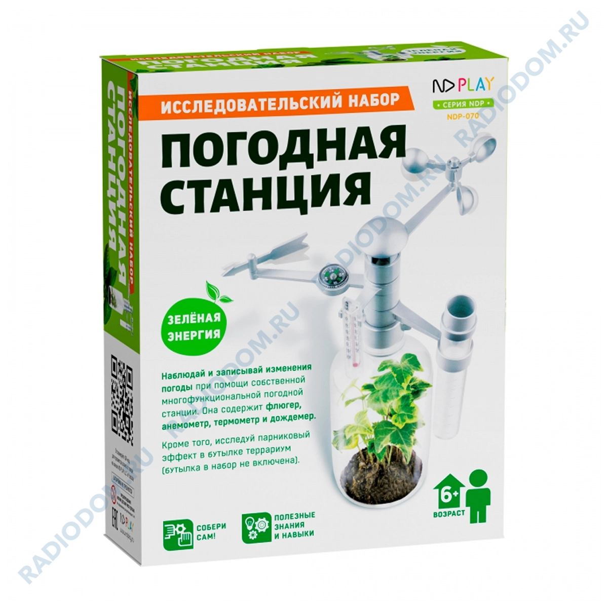 Потрясающий набор позволит маленькому синоптику создать собственную метеостанцию и проводить увлекательные исследования погодных явлений. Узнать направление и силу ветра, выяснить количество выпавших осадков и температуру воздуха, тщательно изучить круговорот воды в природе и действие парникового эффекта, а заодно собрать собственный террариум. Все это сможет юный обладатель набора «Погодная станция». А полученные результаты внесет в специальную таблицу, проанализирует их и сравнит с данными местной метеорологической станции.