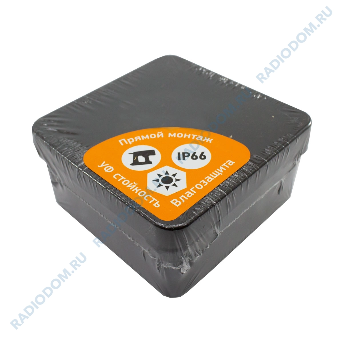 Коробка распаячная 80х80х40мм для наруж установки 8 гермовводов черн IP66 с крышкой Промрукав 60-0210-9005