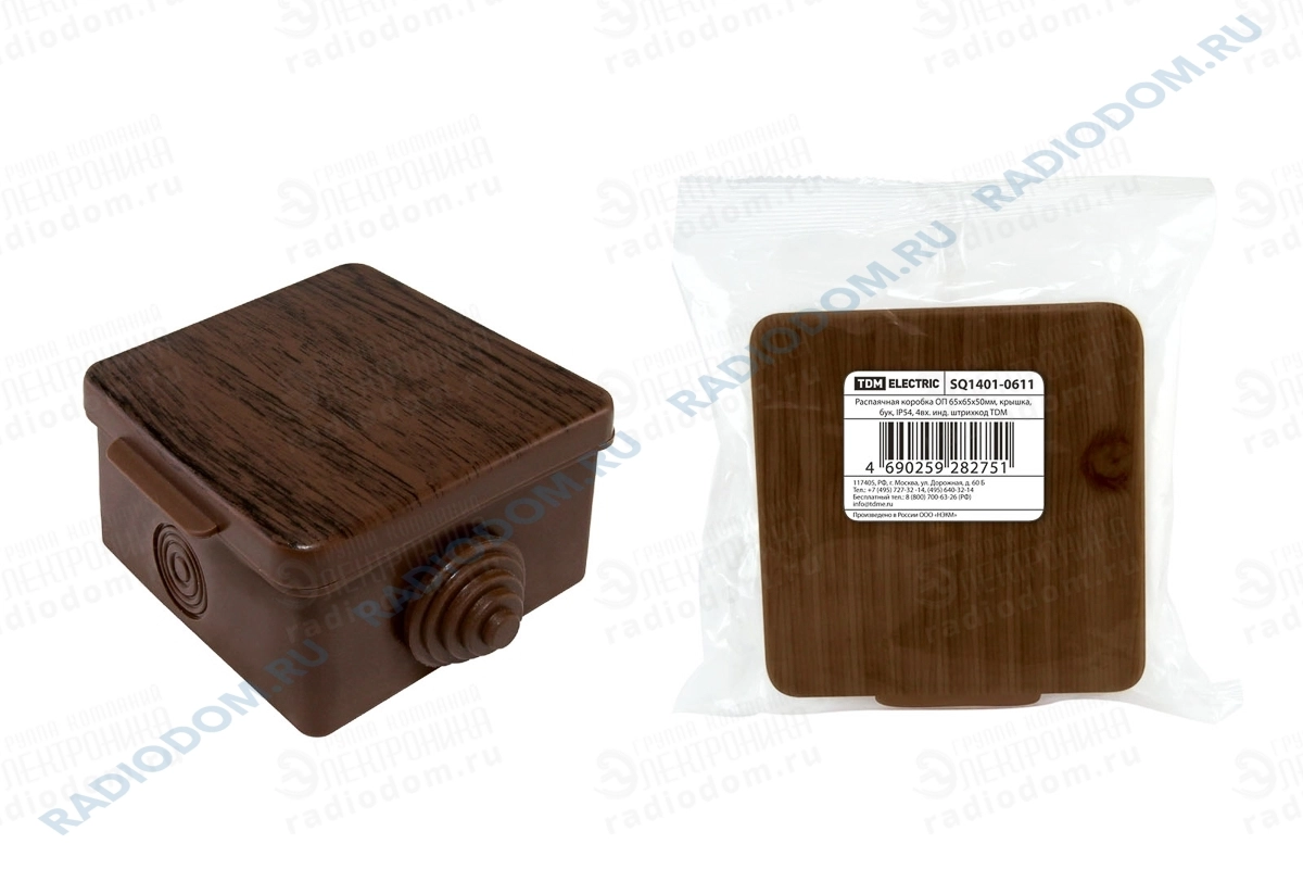 Коробка распаячная 65х65х50мм для нар/уст 4 гермоввода IP54 с крышкой ОП бук TDM ELECTRIC SQ1401-0611