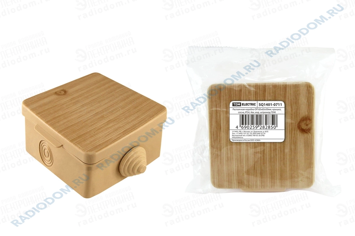 Коробка распаячная 65х65х50мм для наруж установки 4 гермоввода IP54 с крышкой ОП сосна TDM ELECTRIC SQ1401-0711