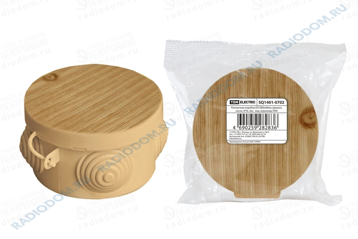 Коробка распаячная D85х40мм для наруж установки 4 гермоввода IP54 с защелкивающейся крышкой сосна TDM ELECTRIC SQ1401-0702