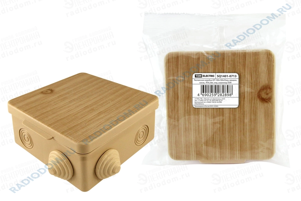 Коробка распаячная 100х100х55мм для наруж установки 8 гермовводов сосна IP54 TDM ELECTRIC SQ1401-0713