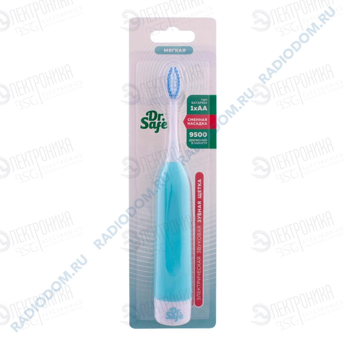 мягкая электрическая звуковая зубная щетка со съемной насадкой. Звуковая зубная щетка подходит тем, кто хочет тщательнее очищать свои зубы, не тратя на это много усилий и времени. Ультразвуковой метод чистки — наиболее эффективный и современный. Щетка совершает 9500 вибраций в минуту. Работает от 1 батарейки АА (приобретается отдельно).