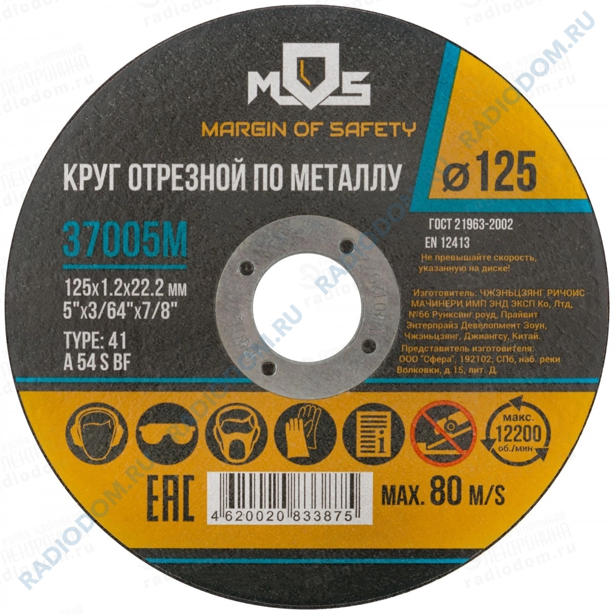 Круг отрезной по металлу 125x1,2x22,2мм MOS