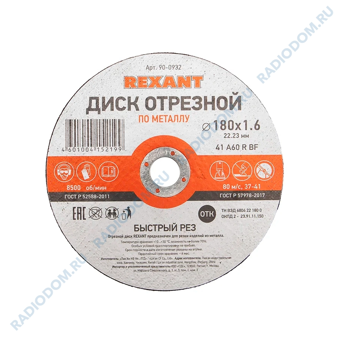Круг отрезной 180х1,6х22,2мм по металлу 90-0932 Rexant
