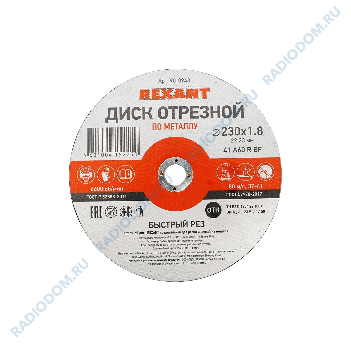Круг отрезной 230/1,8/22,23мм по металлу 90-0943 Rexant