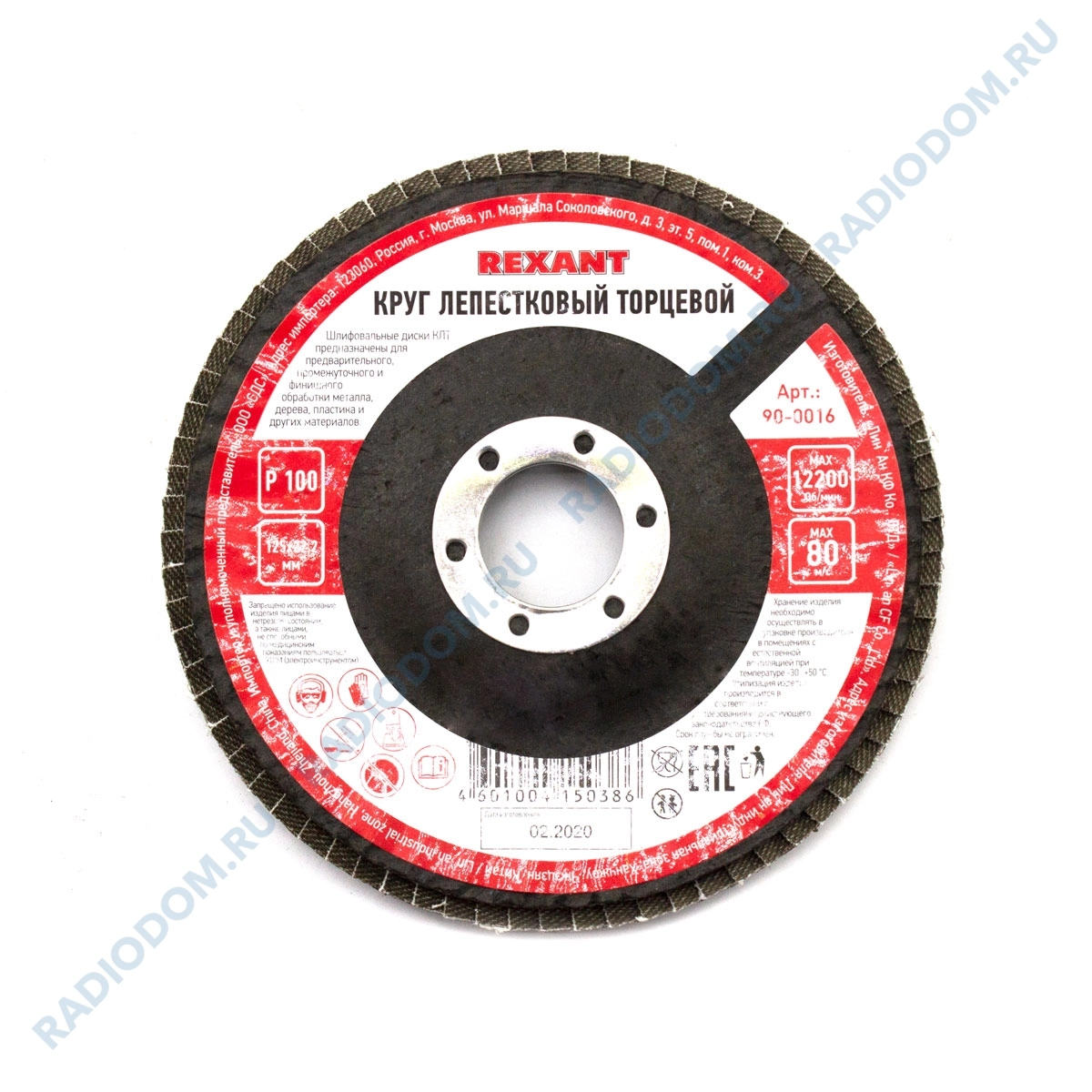 Круг лепестковый торцевой КЛТ 125х22 REXANT применяется на ручных угловых шлифовальных машинках (болгарке) соответствующего диаметра.