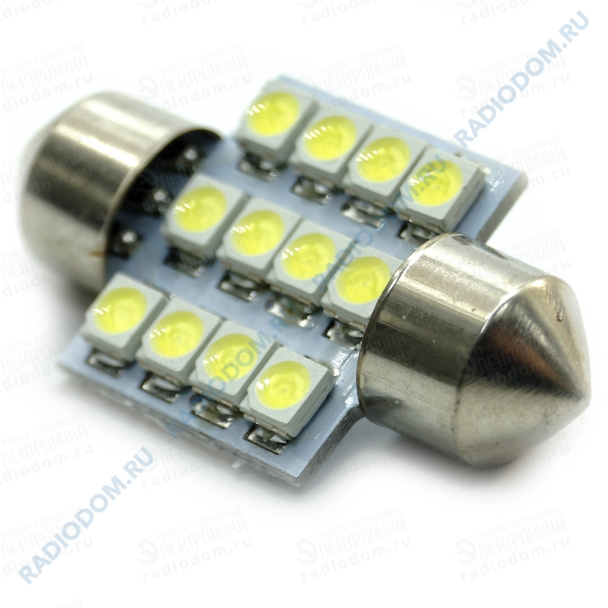 Лампа светодиодная (LED) автомобильная белая C5W 31мм 1,5Вт 12В