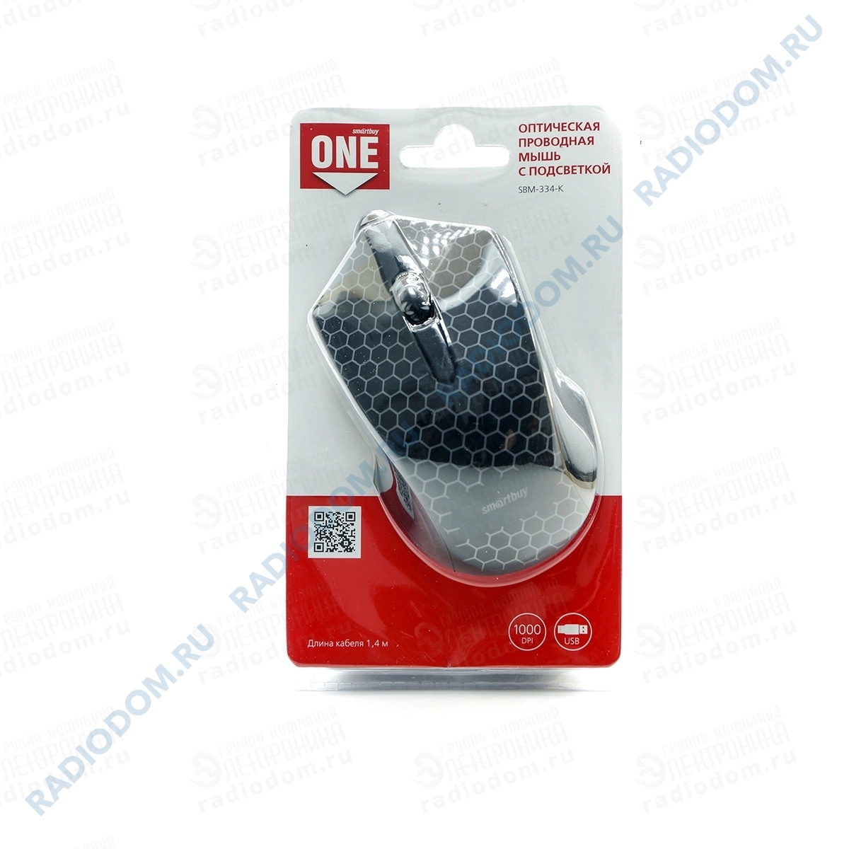 Мышь проводная SBM-334-K черная Smartbuy оптическая (1000dpi)
