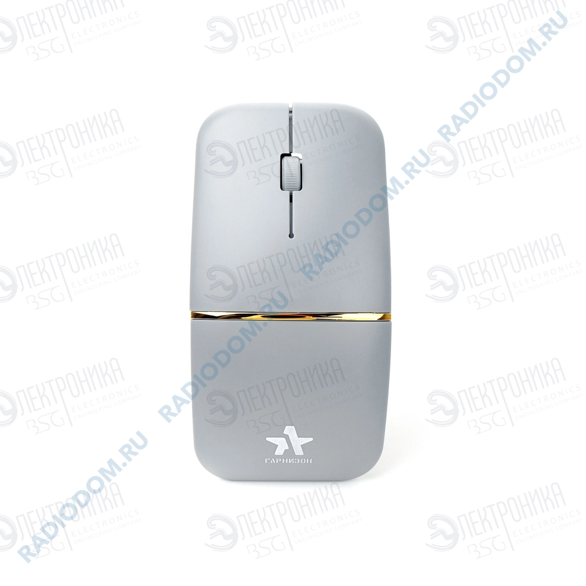Компактная мышь беспроводная Гарнизон GMW-500-1 представлена в сером корпусе. Благодаря симметричной конструкции вы легко перестроите хват с правой руки на левую. Устройство оснащено двумя стандартными кнопками управления и удобным колесиком.