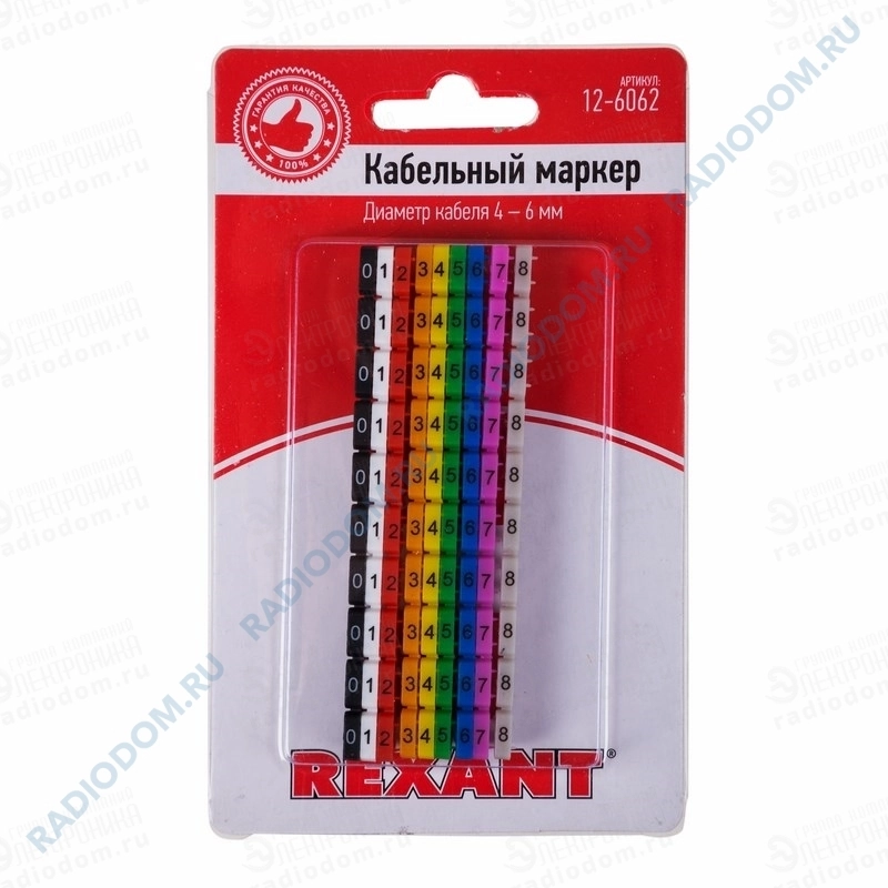 Маркер кабельный 0-9 комплект в блистере (от 4 до 6 мм) Rexant 12-6062