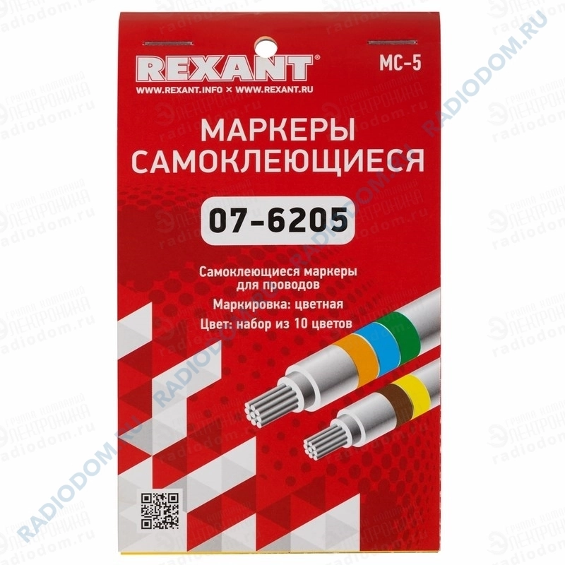 Маркер кабельный МС-5 (450шт) цветные самоклеящийся 07-6205 Rexant