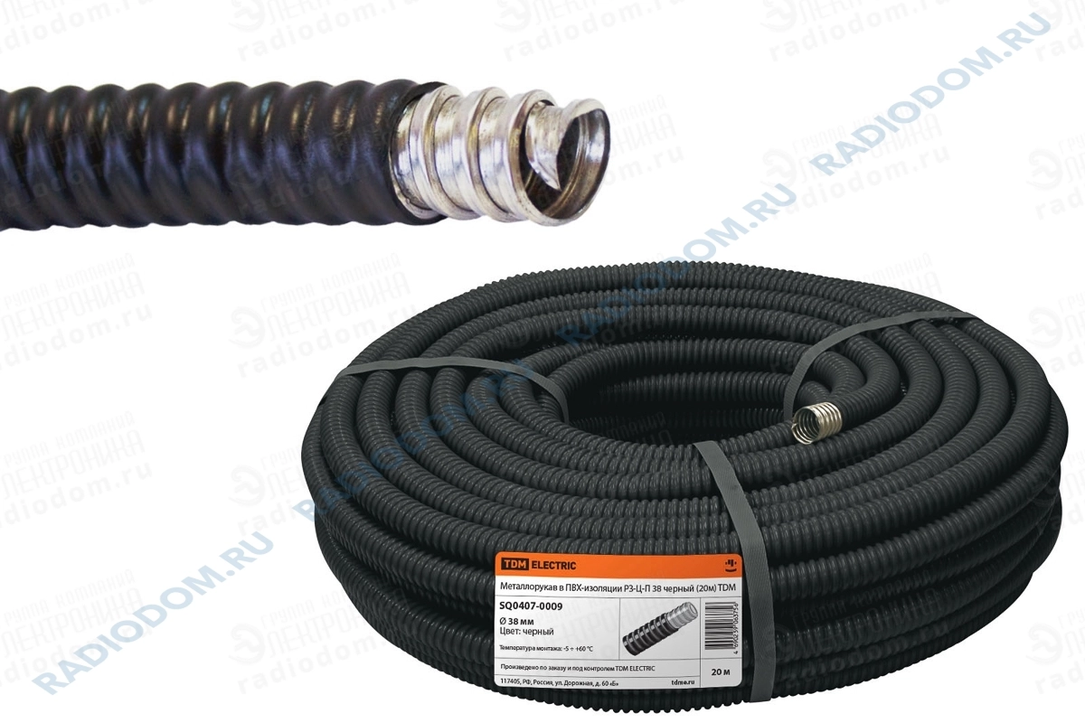 Металлорукав 38мм РЗ-Ц-П черный в ПВХ-изоляции за 1 м TDM ELECTRIC