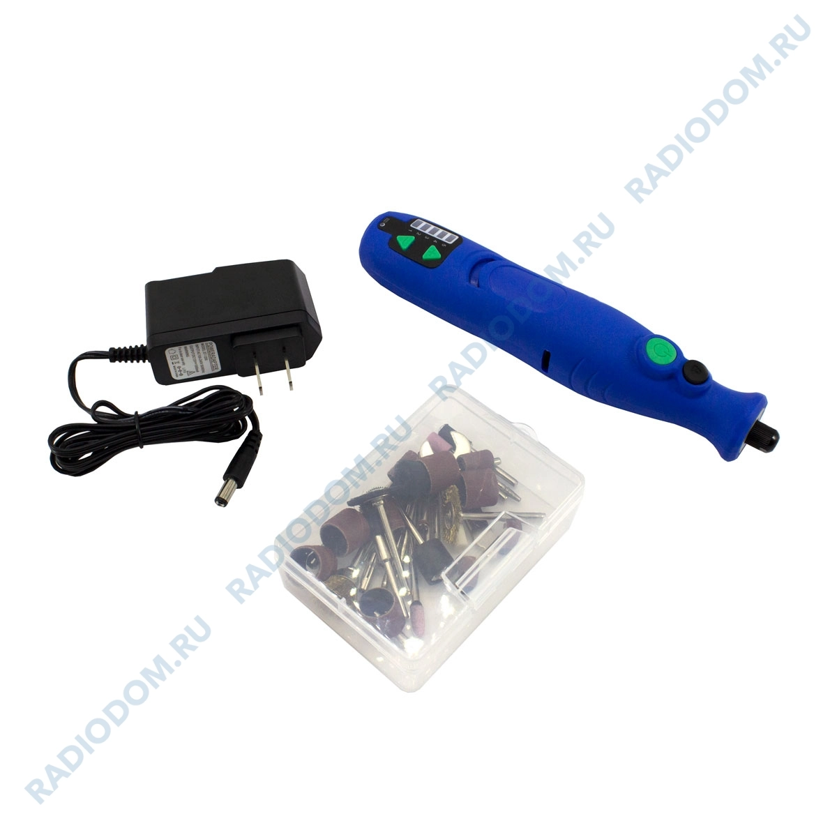 Микродрель Гравер аккумуляторный 7,4В с фонариком + мини-насадки в коробке