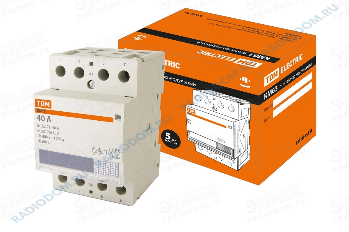 Контактор модульный КМ63/4-40 40А 3НО 1НЗ SQ0213-0019 TDM ELECTRIC
