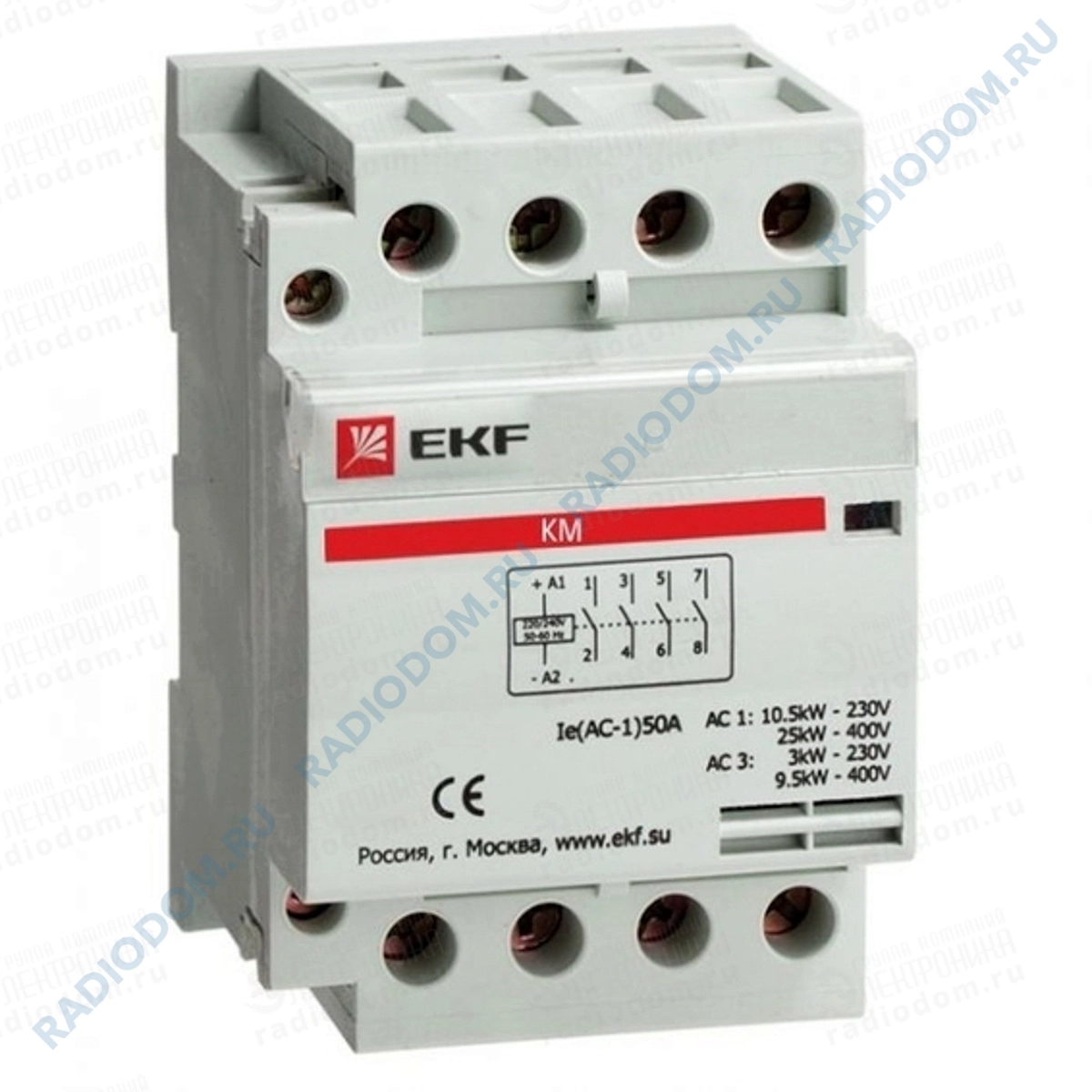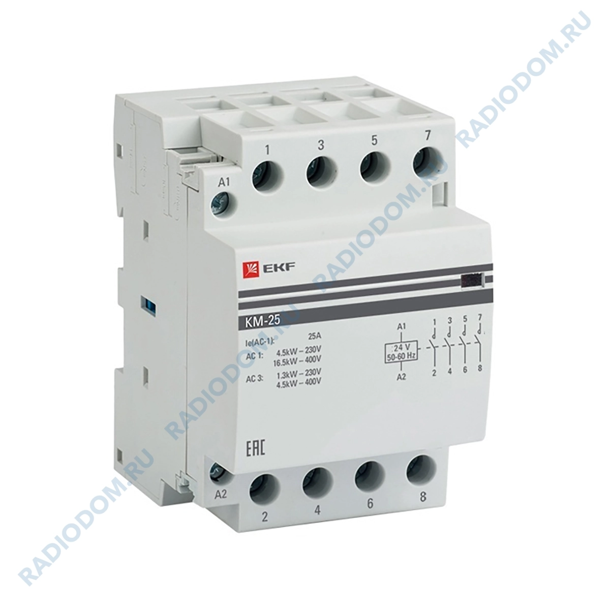 Модульные контакторы представляют из себя контактор в классическом корпусе модульного оборудования. Он состоит из неподвижных контактов, подвижных контактов, которые закреплены в подвижной части магнитной системы. Неподвижная часть магнитной системы закреплена жестко в корпусе КМ. Пружина препятствует смыканию контактов. При подаче напряжения на катушку управления в магнитной системе контактора возникает магнитное поле, которое, преодолевая сопротивление пружины, смыкает магнитную систему и замыкает контакты. При отключении напряжения с катушки управления пружина размыкает контакты. Возможна коммутация алюминиевым и медным проводом.