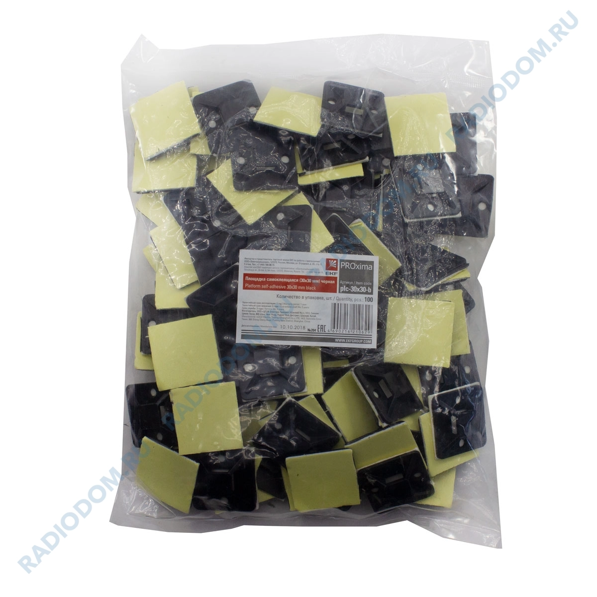 Площадка самоклеющаяся 30х30мм (100шт) черная EKF