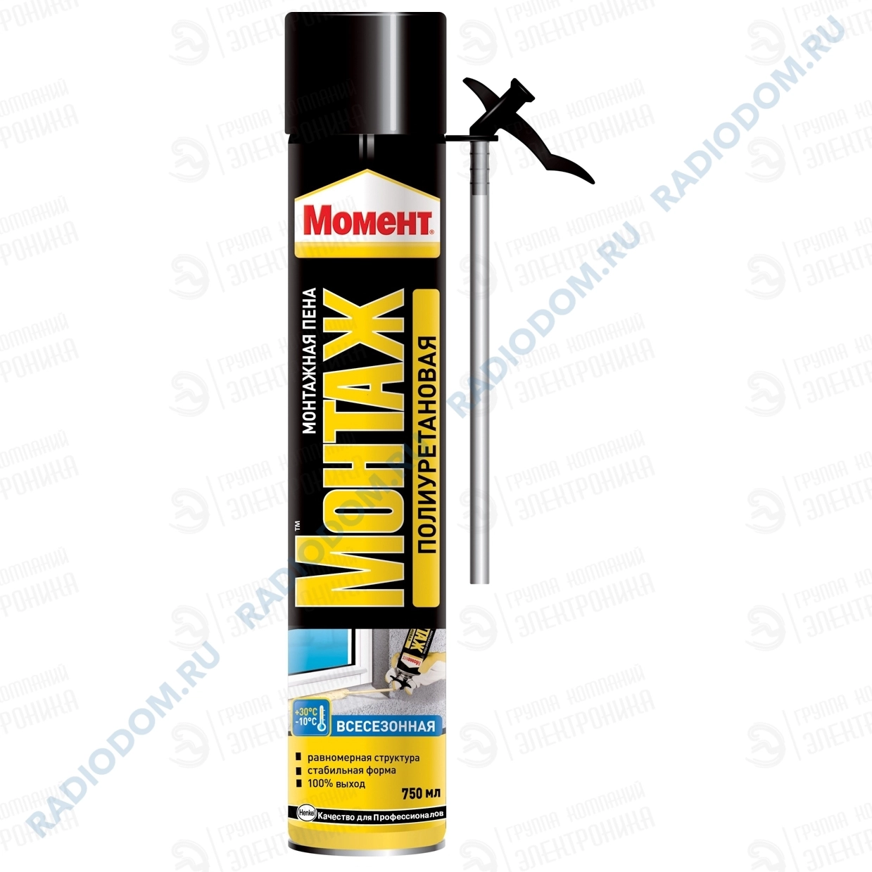 Монтажная пена Момент Монтаж Стандартная представляет собой готовую к применению однокомпонентную полиуретановую пену, затвердевающую под воздействием влажности воздуха. Простота в применении, не требуется специальный пистолет