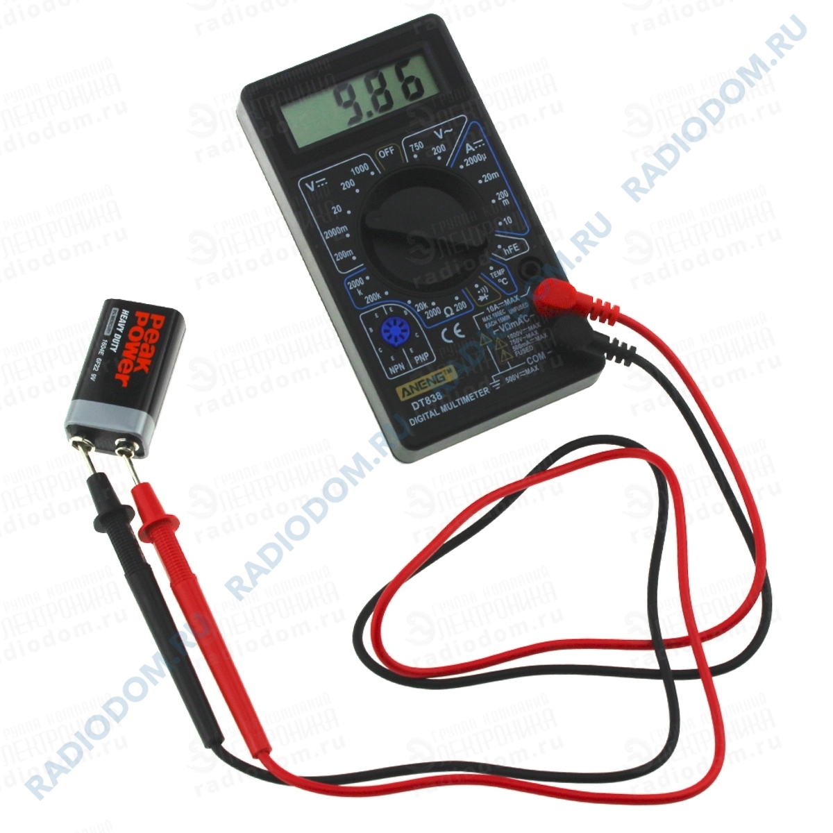 Данный прибор DT838 предназначен для измерений постоянного, переменного напряжения и тока, сопротивления, проверки диодов, транзисторов и звуковой прозвонки цепей. Оснащен удобным поворотным переключателем. Мультиметр изготовлен из прочного материала, что обеспечивает приброру сохранность при различных видов повреждений.