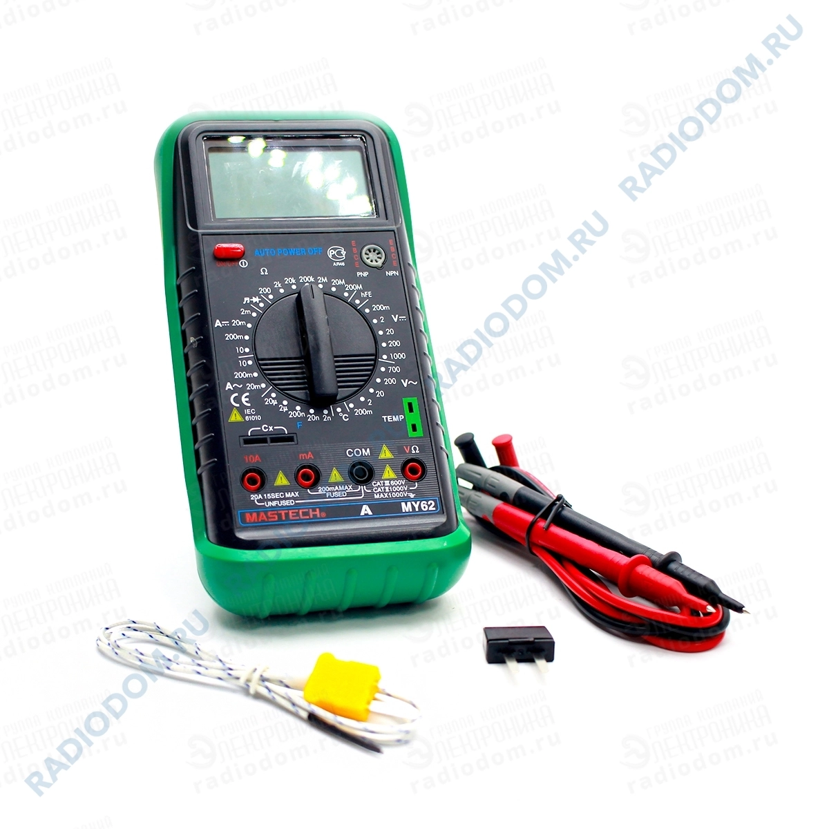 Прибор MY62 используется для для измерения постоянного и переменного напряжения, постоянного и переменного тока, температуры. сопротивления и емкости.