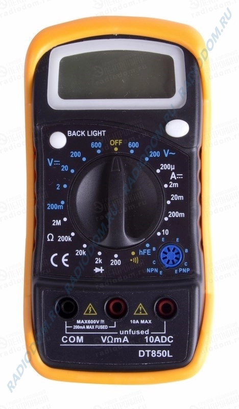 Данный прибор MAS830L (DT850L) постоянное и переменное напряжение, постоянный ток, сопротивление в цепи, а также проводят тест диодов и прозвонку цепи. Оснащен дисплеем на который выводятся результаты показаний. Из-за своего небольшого размера. прибор не занимает много места.