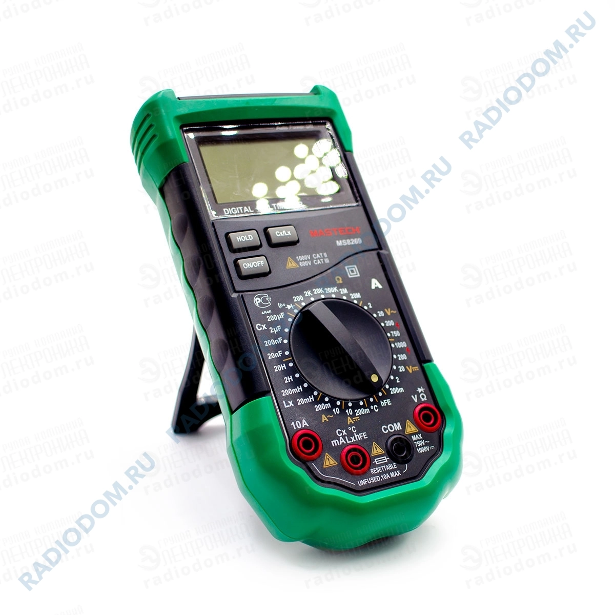 Профессиональный мультиметр MASTECH MS8269 предназначен для измерения постоянного и переменного напряжения, постоянного и переменного тока, сопротивления в цепи, емкости, частоты и даже температуры. Также можно проводить тестирование диодов и осуществлять прозвонку целостности цепи. Прибор изготовлен из прочных материалов, благодаря чему имеет увеличенный срок службы.