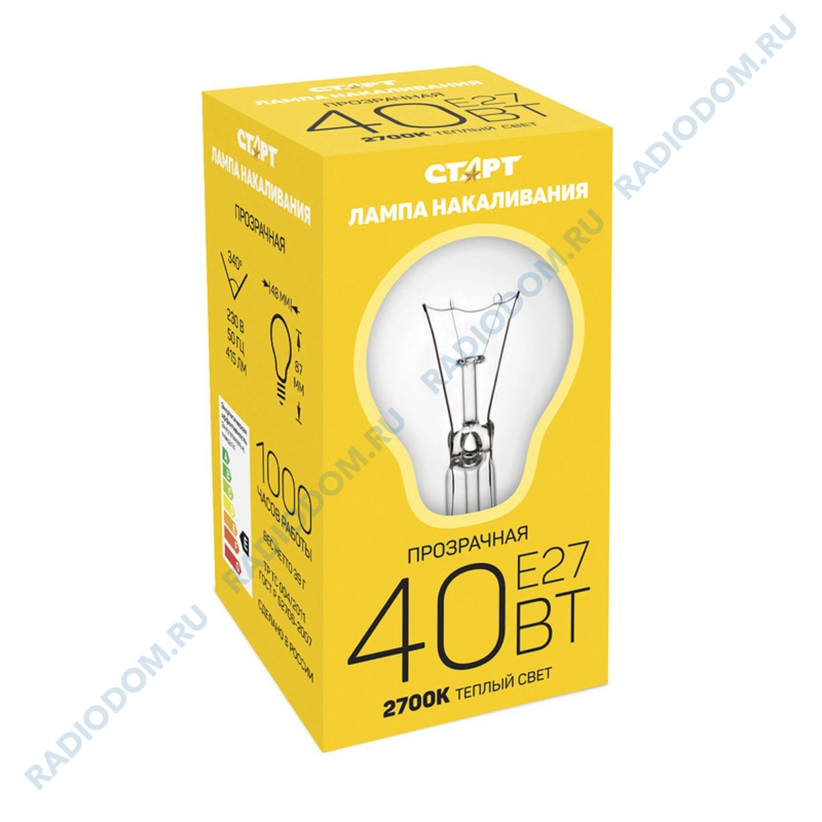 Лампа накаливания груша 40Вт 220В E27 СТАРТ